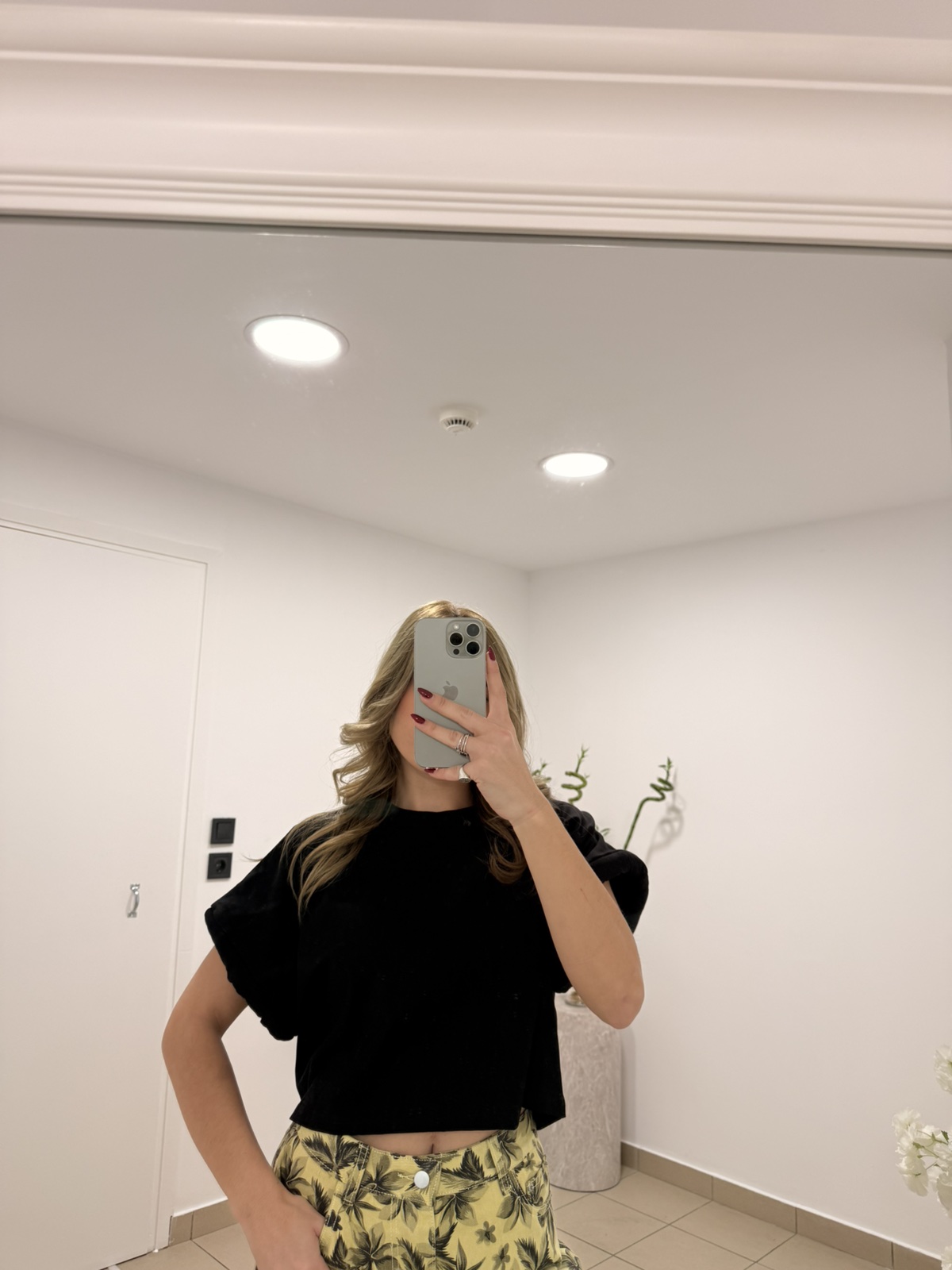 Crop T-Shirt με άνετη εφαρμογή και βάτες στους ώμους