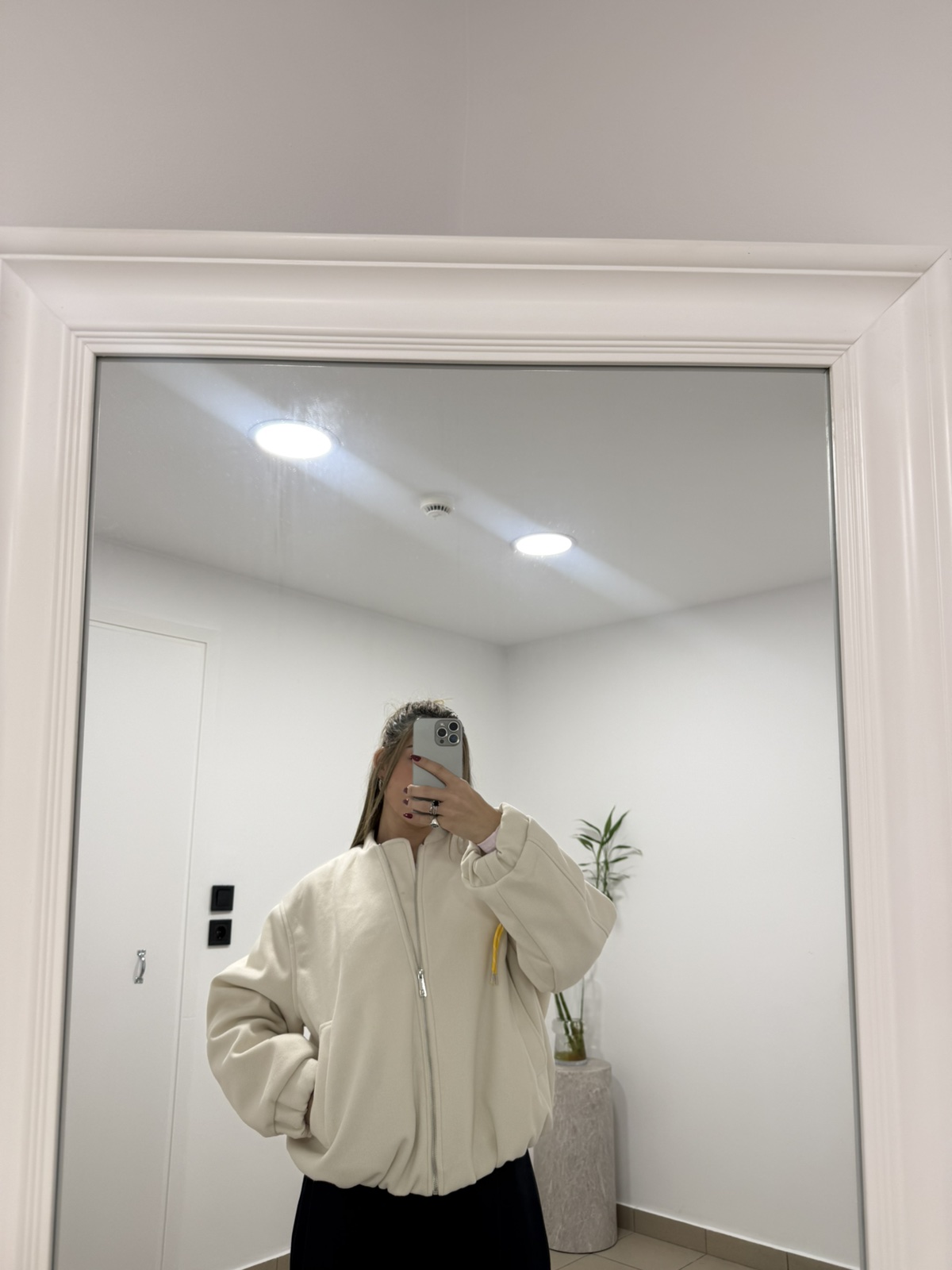 Κοντό παλτό με εσωτερική επένδυση. Λεπτομέρεια στο μανίκι με φερμουάρ. Σούρα στη μέση. Μεγάλες διαστάσεις, διαθέσιμο σε ένα μέγεθος.