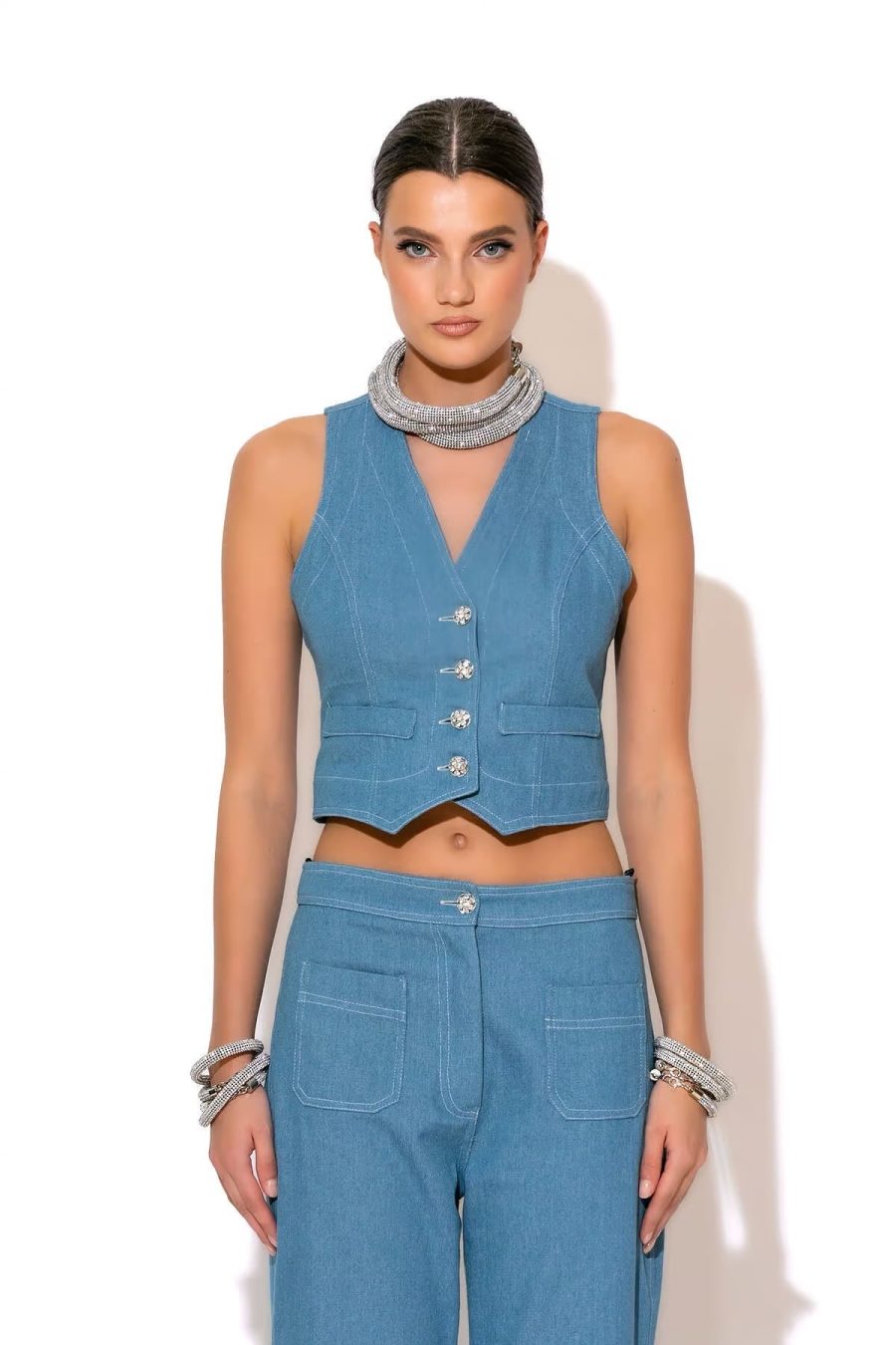+ Tina κοκτέιλ Oversized Τζιν Σακάκι με κρυσταλλινο Κουμπί